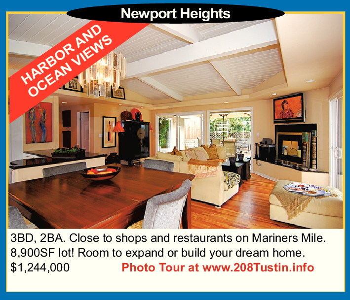 3BD, 2BA. Close to shops and restaurants on Mariners Mile. 8,900SF lot! Room to expand or build your dream home. $1,244,000 Photo Tour at www.208Tustin.info