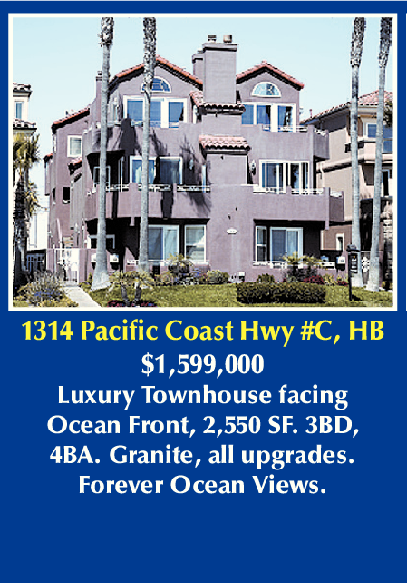 1314 Pacific Coast Hwy #C, HB $1,599,000 Luxury Townhouse facing Ocean Front, 2,550 SF. 3BD, 4BA. Granite, all upgrades.