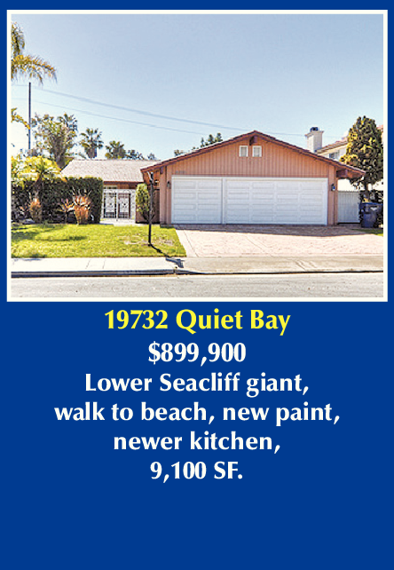 19732 Quiet Bay $899,900 Lower Seacliff giant, walk to beach, new paint, newer kitchen, 9,100 SF.