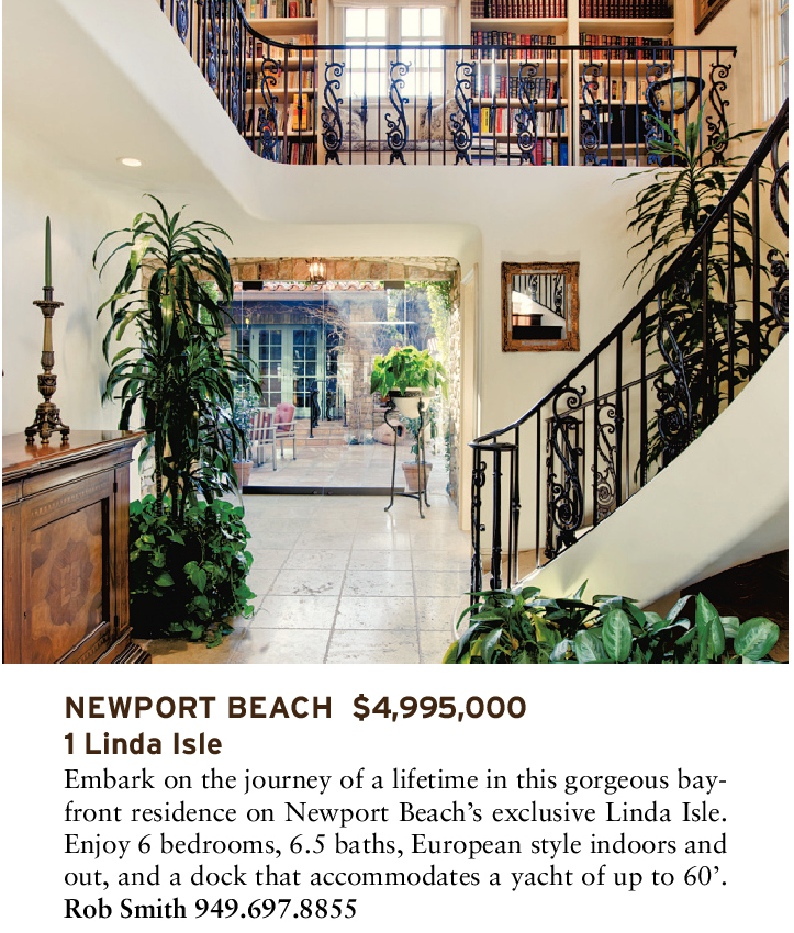 NEWPORT BEACH $4,995,000 1 Linda Isle Embark on the journey of a lifetime in this gorgeous bayfront residence on Newport Beach’s exclusive Linda Isle.