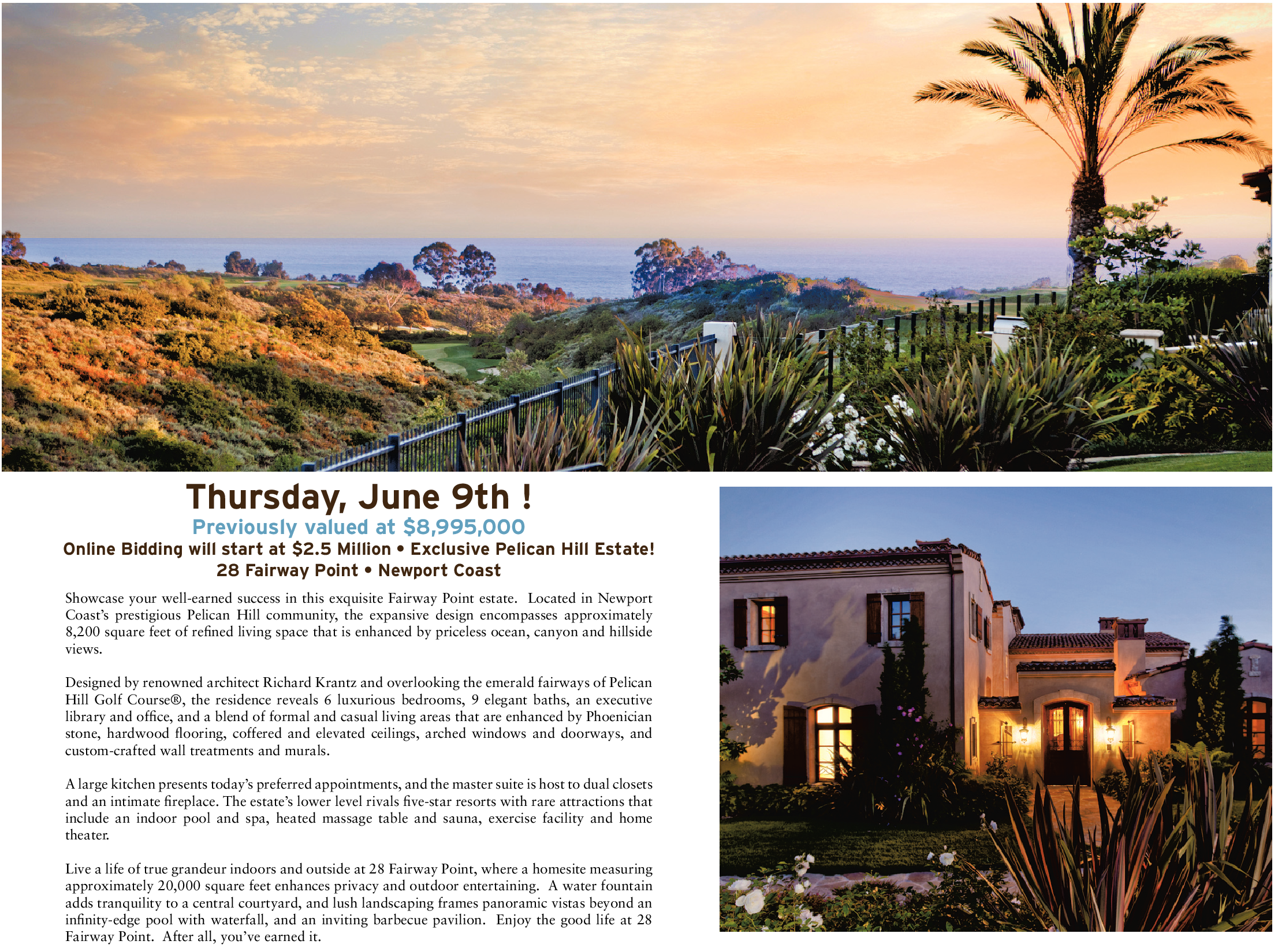 Previously valued at $8,995,000 Online Bidding will start at $2.5 Million • Exclusive Pelican Hill Estate!