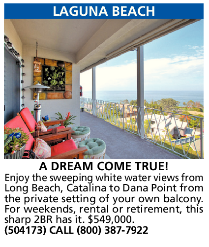 Enjoy the sweeping white water views from Long Beach, Catalina to Dana Point from the private setting of your own balcony. For weekends, rental or retirement, this sharp 2BR has it. $549,000. (504173) CALL (800) 387-7922