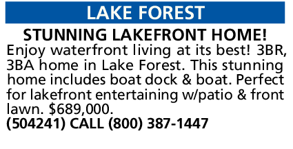 Enjoy waterfront living at its best! 3BR, 3BA home in Lake Forest. This stunning home includes boat dock & boat. Perfect for lakefront entertaining w/patio & front lawn. $689,000.