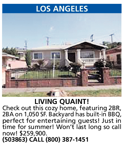 Check out this cozy home, featuring 2BR, 2BA on 1,050 SF. Backyard has built-in BBQ, perfect for entertaining guests! Just in time for summer! Won’t last long so call now! $259,900. (503863) CALL (800) 387-1451