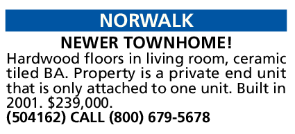 Hardwood floors in living room, ceramic tiled BA. Property is a private end unit that is only attached to one unit. Built in 2001. $239,000. (504162) CALL (800) 679-5678