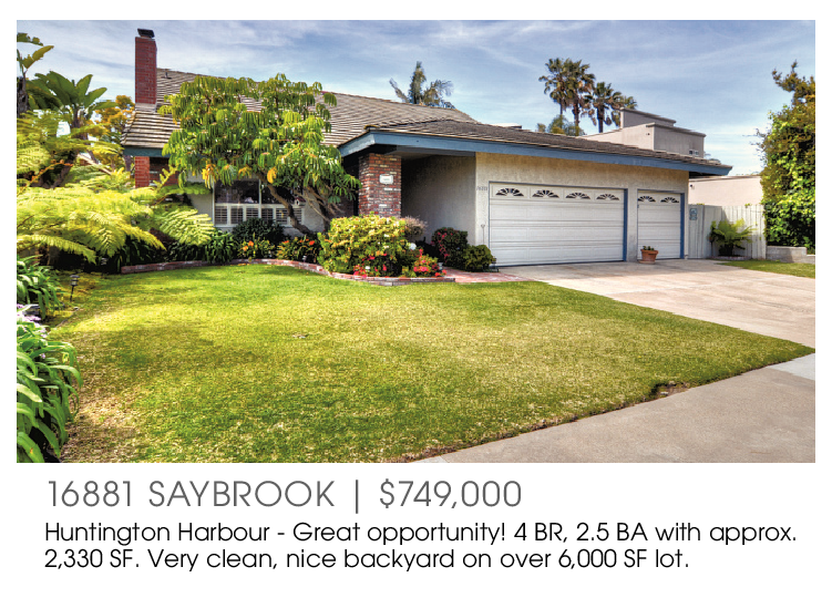 16881 SAYBROOK | $749,000 Huntington Harbour - Great opportunity! 4 BR, 2.5 BA with approx. 2,330 SF. Very clean, nice backyard on over 6,000 SF lot.