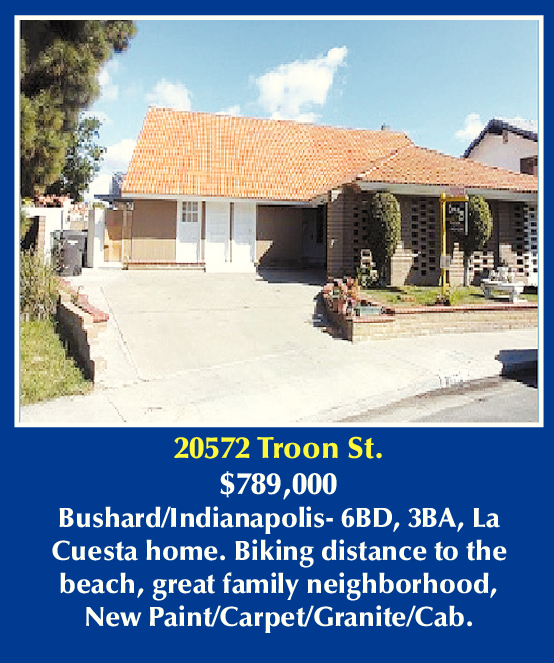 $789,000 Bushard/Indianapolis- 6BD, 3BA, La Cuesta home. Biking distance to the beach, great family neighborhood, New Paint/Carpet/Granite/Cab.