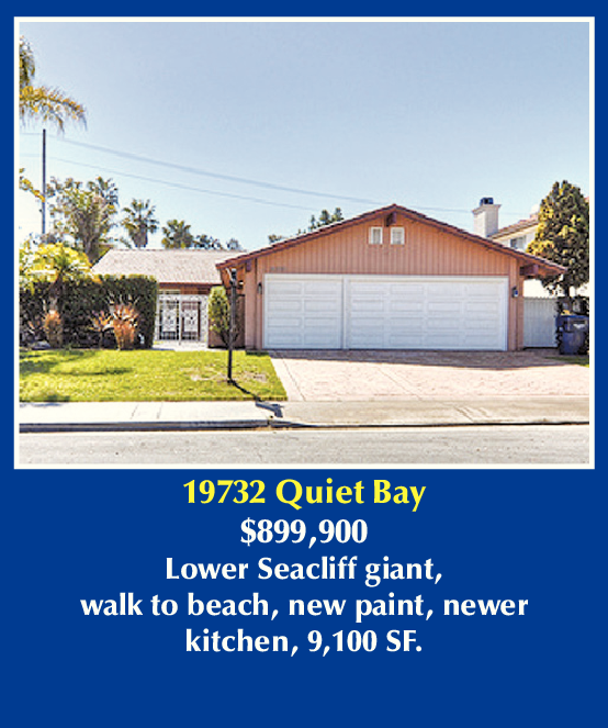 19732 Quiet Bay $899,900 Lower Seacliff giant, walk to beach, new paint, newer kitchen, 9,100 SF.