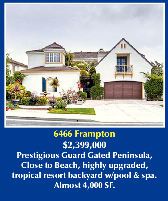 6466 Frampton $2,399,000 Prestigious Guard Gated Peninsula, Close to Beach, highly upgraded, tropical resort backyard w/pool & spa.