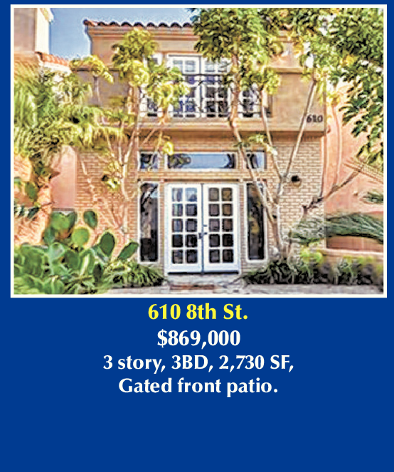 627 8th St. $1,089,000 Custom 3-story on corner lot, 3BD, 3BA w/
