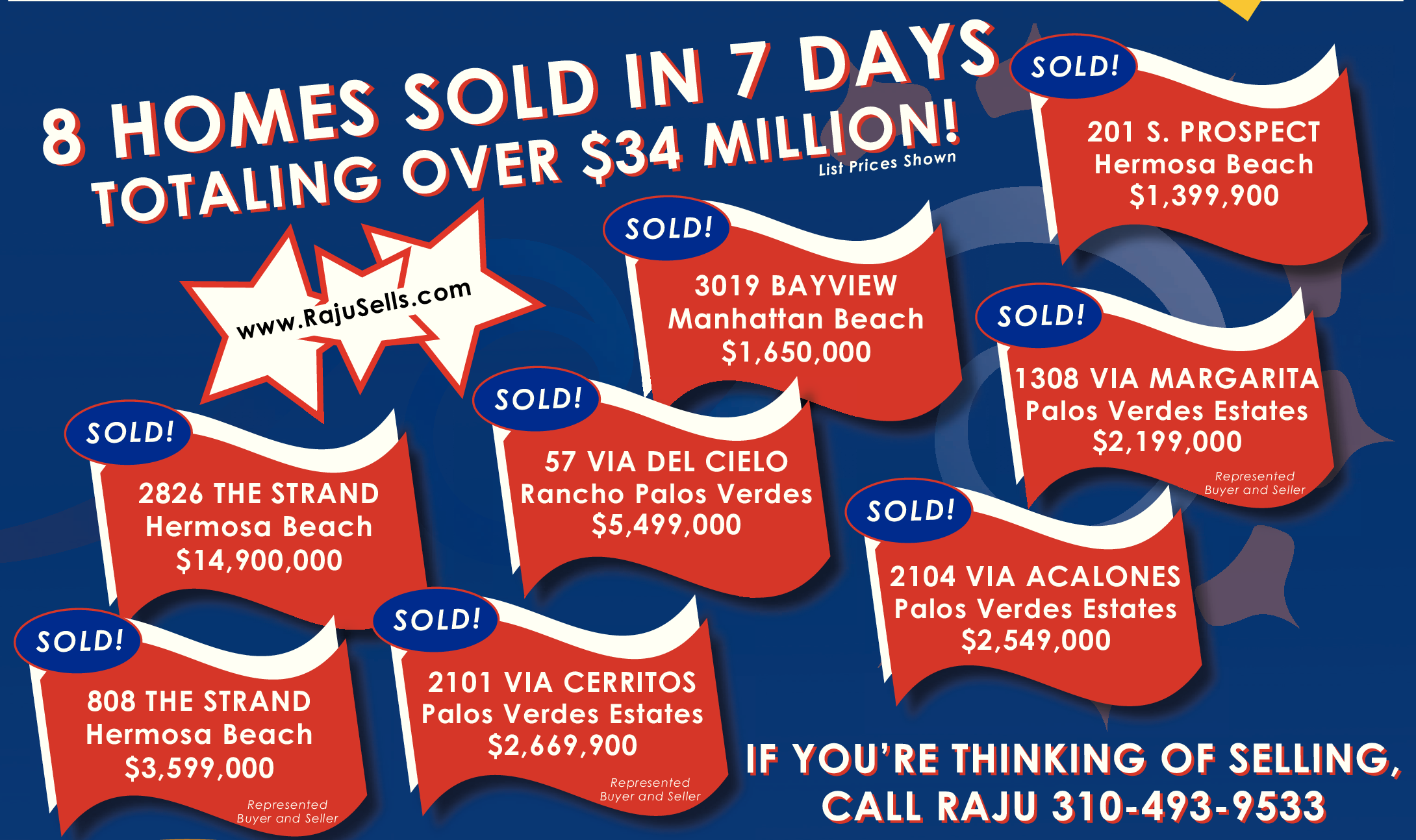 2826 THE STRAND Hermosa Beach $14,900,000 808 THE STRAND Hermosa Beach $3,599,000 Represented Buyer and Seller 3019 BAYVIEW Manhattan Beach $1,650,000 57 VIA DEL CIELO Rancho Palos Verdes $5,499,000 2101 VIA CERRITOS Palos Verdes Estates $2,669,900 Represented Buyer and Seller 201 S. PROSPECT Hermosa Beach $1,399,900 1308 VIA MARGARITA Palos Verdes Estates $2,199,000 2104 VIA ACALONES Palos Verdes Estates $2,549,000 Represented Buyer and Seller