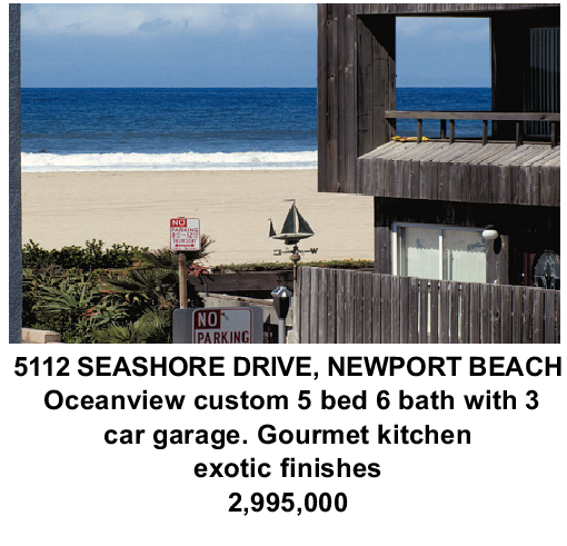 5112 SEASHORE DRIVE, NEWPORT BEACH Oceanview custom 5 bed 6 bath with 3 car garage. Gourmet kitchen exotic finishes 2,995,000