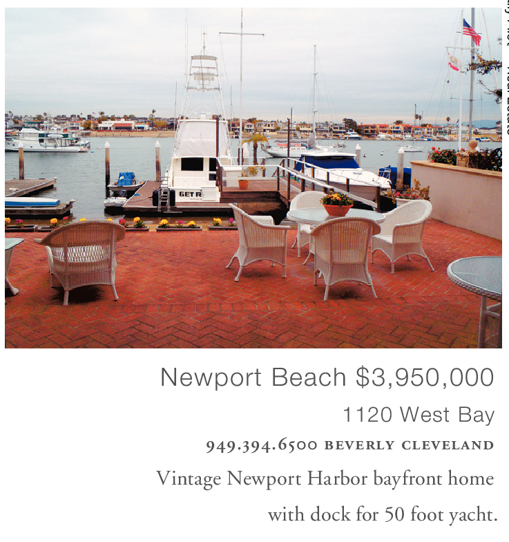 Newport Beach $3,950,000 1120 West Bay 949.394.6500 beverly cleveland Vintage Newport Harbor bayfront home with dock for 50 foot yacht.