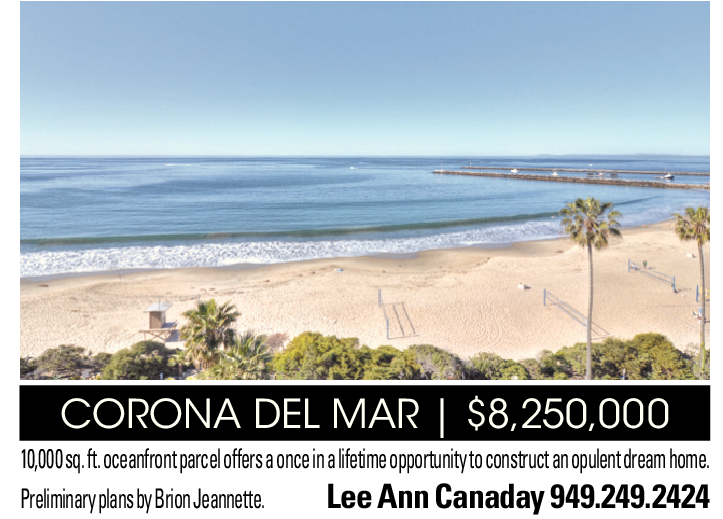 10,000 sq. ft. oceanfront parcel offers a once in a lifetime opportunity to construct an opulent dream home. Preliminary plans by Brion Jeannette. Lee Ann Canaday 949.249.2424