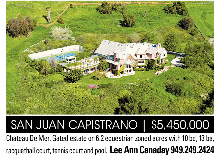 Chateau De Mer. Gated estate on 6.2 equestrian zoned acres with 10 bd, 13 ba, racquetball court, tennis court and pool. Lee Ann Canaday 949.249.2424