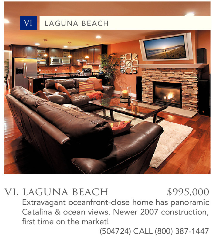 VI. LAGUNA BEACH $995,000 Extravagant oceanfront-close home has panoramic Catalina & ocean views. Newer 2007 construction, first time on the market!