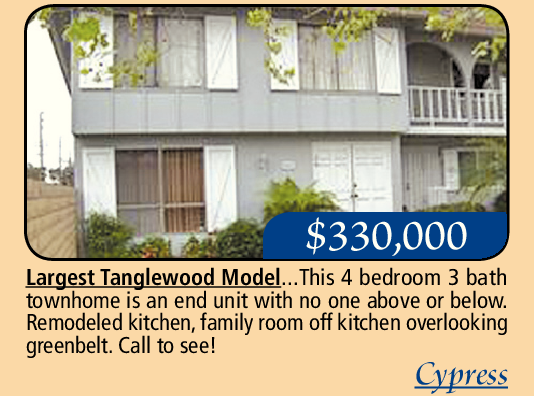 Largest Tanglewood Model...This 4 bedroom 3 bath townhome is an end unit with no one above or below. Remodeled kitchen, family room off kitchen overlooking greenbelt. Call to see!