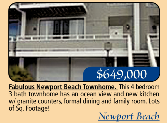 Fabulous Newport Beach Townhome. This 4 bedroom 3 bath townhome has an ocean view and new kitchen w/ granite counters, formal dining and family room. Lots of Sq. Footage!