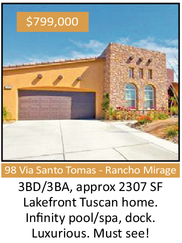 98 Via Santo Tomas - Rancho Mirage 3BD/3BA, approx 2307 SF Lakefront Tuscan home.
