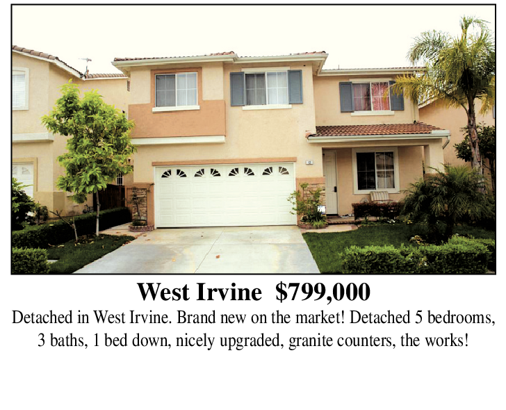 West Irvine $799,000 Detached in West Irvine. Brand new on the market! Detached 5 bedrooms, 3 baths, 1 bed down, nicely upgraded, granite counters, the works!