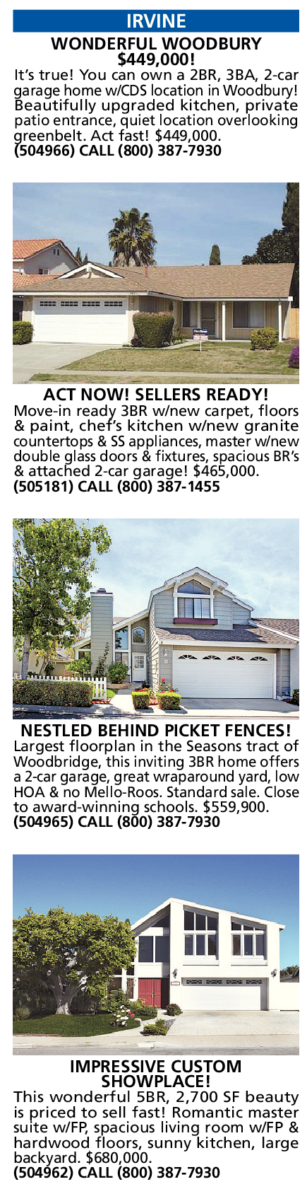 Move-in ready 3BR w/new carpet, floors & paint, chef’s kitchen w/new granite countertops & SS appliances, master w/new double glass doors & fixtures, spacious BR’s & attached 2-car garage! $465,000. (505181) CALL (800) 387-1455