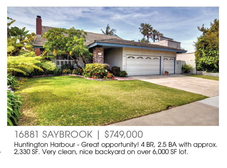 16881 SAYBROOK | $749,000 Huntington Harbour - Great opportunity! 4 BR, 2.5 BA with approx. 2,330 SF. Very clean, nice backyard on over 6,000 SF lot.