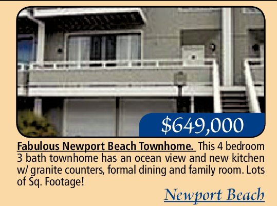 Fabulous Newport Beach Townhome. This 4 bedroom 3 bath townhome has an ocean view and new kitchen w/ granite counters, formal dining and family room. Lots of Sq. Footage!