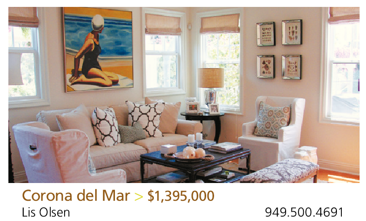 Corona del Mar > $1,395,000 Lis Olsen 949.500.4691