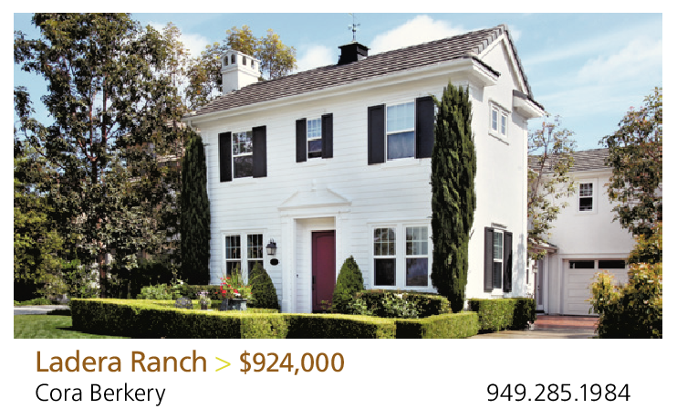 Ladera Ranch > $924,000 Cora Berkery 949.285.1984