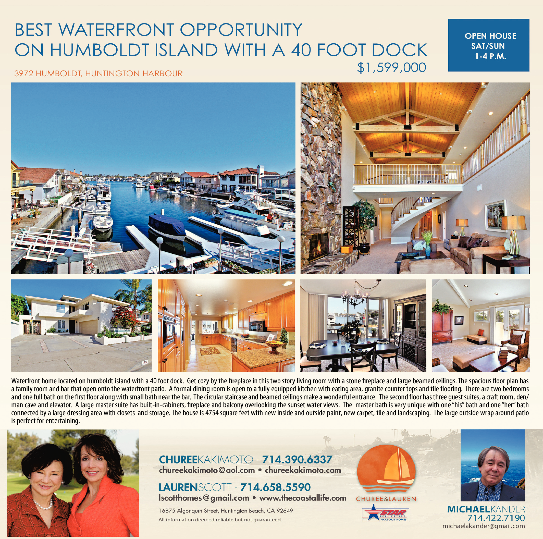 Waterfront home located on humboldt island with a 40 foot dock. Get cozy by the fireplace in this two story living room with a stone fireplace and large beamed ceilings. The spacious floor plan has a family room and bar that open onto the waterfront patio. A formal dining room is open to a fully equipped kitchen with eating area, granite counter tops and tile flooring. There are two bedrooms and one full bath on the first floor along with small bath near the bar. The circular staircase and beamed ceilings make a wonderful entrance. The second floor has three guest suites, a craft room, den/ man cave and elevator. A large master suite has built-in-cabinets, fireplace and balcony overlooking the sunset water views. The master bath is very unique with one “his” bath and one “her” bath connected by a large dressing area with closets and storage. The house is 4754 square feet with new inside and outside paint, new carpet, tile and landscaping. The large outside wrap around patio is perfect for entertaining.