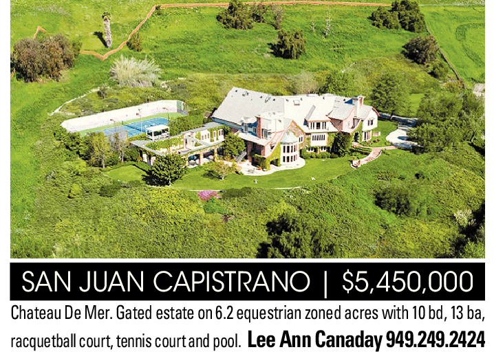 Chateau De Mer. Gated estate on 6.2 equestrian zoned acres with 10 bd, 13 ba, racquetball court, tennis court and pool. Lee Ann Canaday 949.249.2424