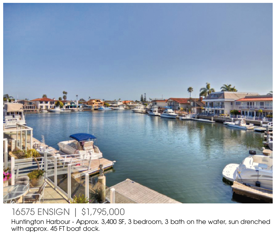 16575 ENSIGN | $1,795,000 Huntington Harbour - Approx. 3,400 SF, 3 bedroom, 3 bath on the water, sun drenched with approx. 45 FT boat dock.