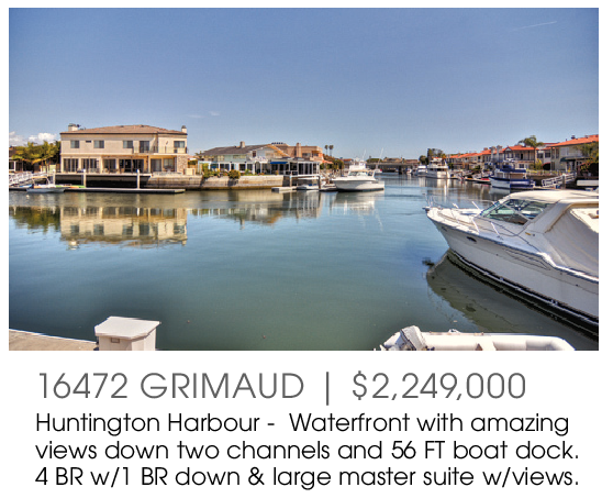 16472 GRIMAUD | $2,249,000 Huntington Harbour - Waterfront with amazing views down two channels and 56 FT boat dock. 4 BR w/1 BR down & large master suite w/views.