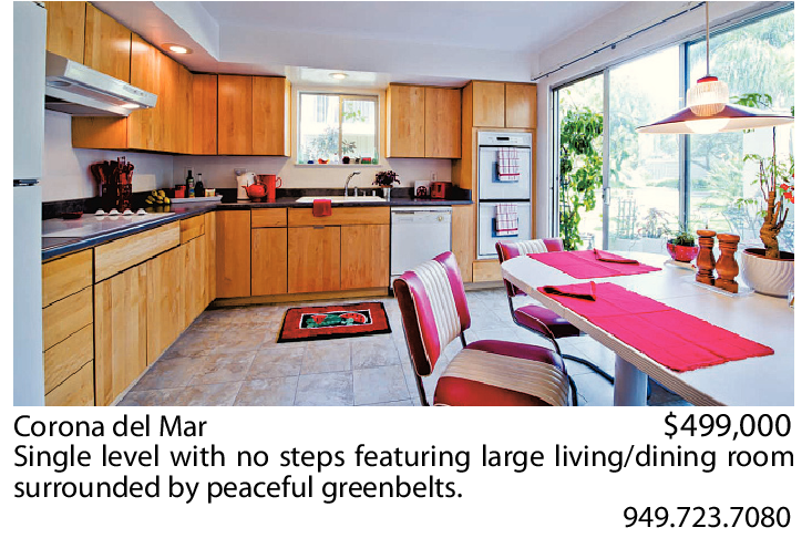 Corona del Mar $499,000 Single level with no steps featuring large living/dining room surrounded by peaceful greenbelts.