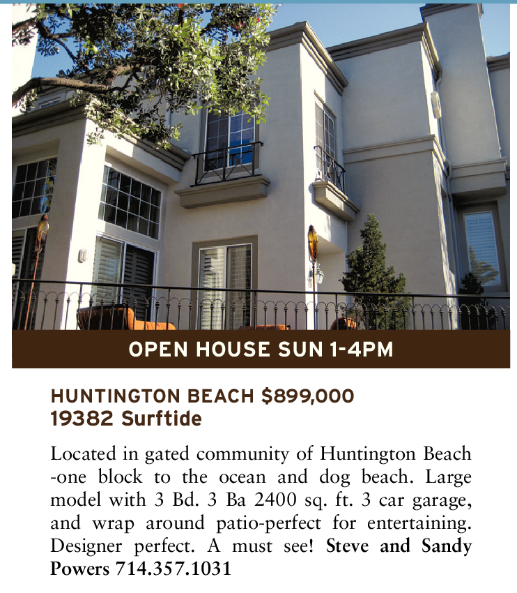 Located in gated community of Huntington Beach -one block to the ocean and dog beach. Large model with 3 Bd. 3 Ba 2400 sq. ft. 3 car garage, and wrap around patio-perfect for entertaining. Designer perfect. A must see! Steve and Sandy Powers 714.357.1031