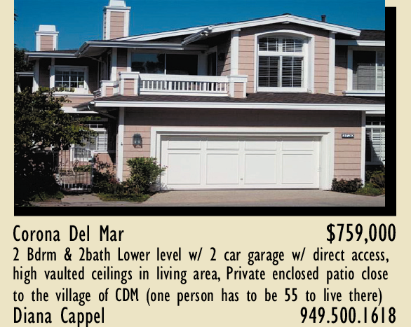 Corona Del Mar $759,000 2 Bdrm & 2bath Lower level w/ 2 car garage w/ direct access,