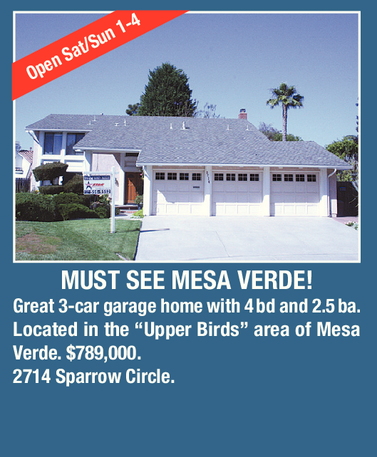 Great 3-car garage home with 4 bd and 2.5 ba. Located in the “Upper Birds” area of Mesa Verde. $789,000. 2714 Sparrow Circle.