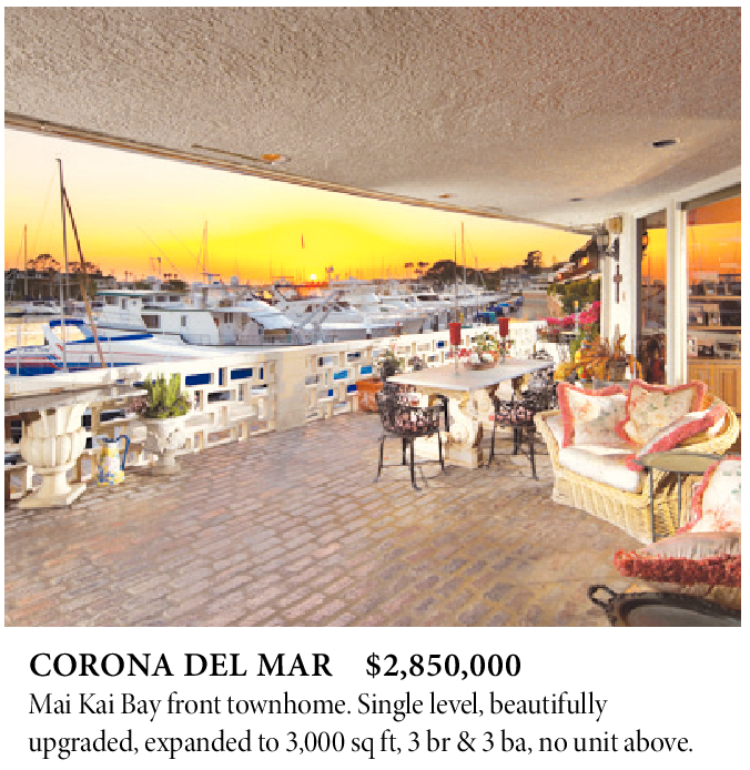 CORONA DEL MAR $2,850,000 Mai Kai Bay front townhome. Single level, beautifully upgraded, expanded to 3,000 sq ft, 3 br & 3 ba, no unit above.