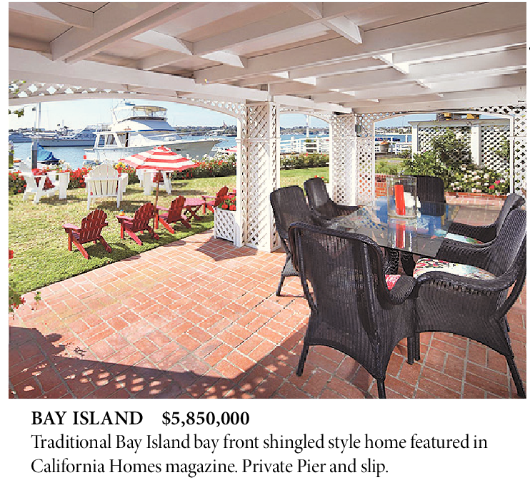 BAY ISLAND $5,850,000 Traditional Bay Island bay front shingled style home featured in California Homes magazine. Private Pier and slip.