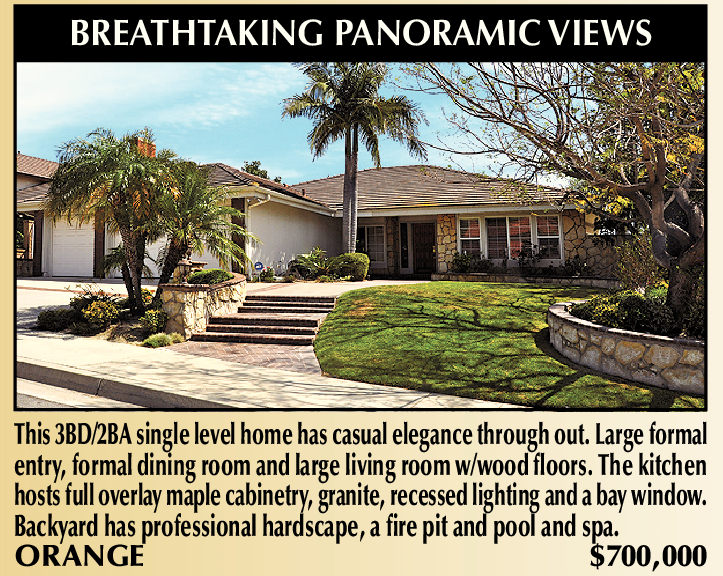 This 3BD/2BA single level home has casual elegance through out. Large formal entry, formal dining room and large living room w/wood floors. The kitchen hosts full overlay maple cabinetry, granite, recessed lighting and a bay window. Backyard has professional hardscape, a fire pit and pool and spa. ORANGE $700,000