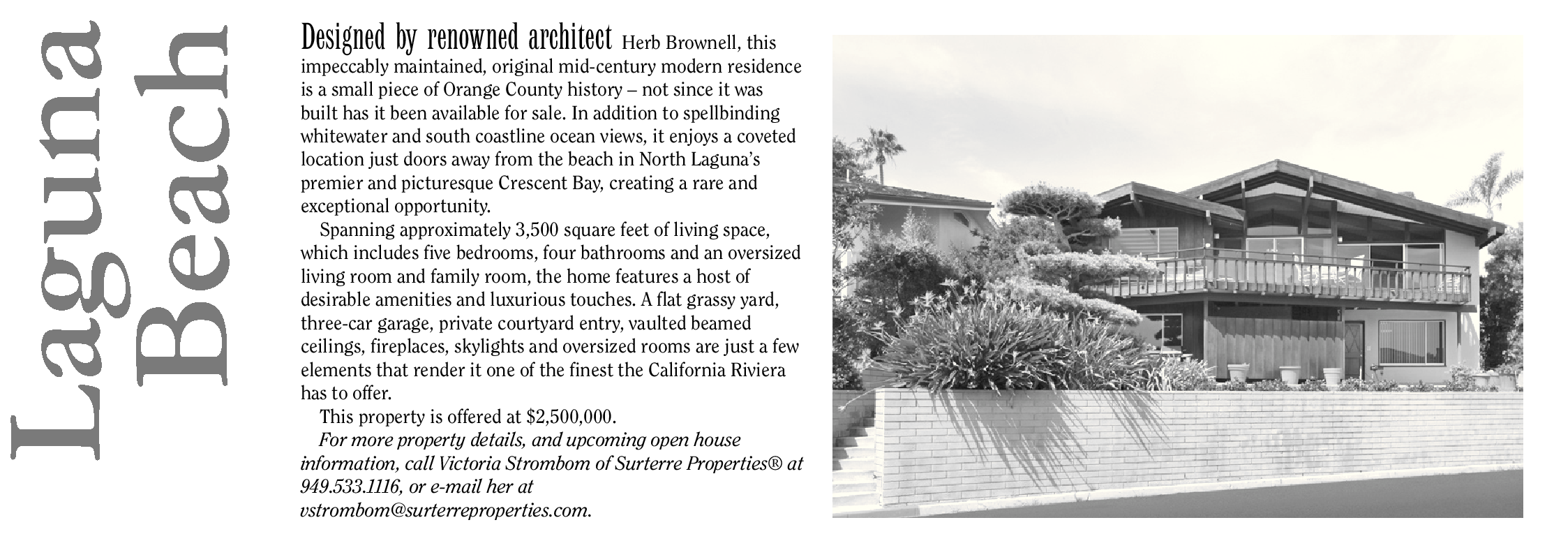 This property is offered at $2,500,000. For more property details, and upcoming open house information, call Victoria Strombom of Surterre Properties® at 949.533.1116, or e-mail her at vstrombom@surterreproperties.com.