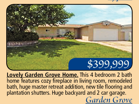 Lovely Garden Grove Home. This 4 bedroom 2 bath home features cozy fireplace in living room, remodeled bath, huge master retreat addition, new tile flooring and plantation shutters. Huge backyard and 2 car garage.