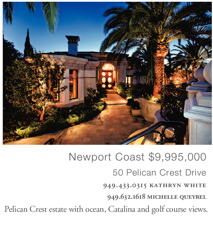 Newport Coast $9,995,000 50 Pelican Crest Drive 949.433.0315 kathryn white 949.632.1618 michelle queyrel Pelican Crest estate with ocean, Catalina and golf course views.