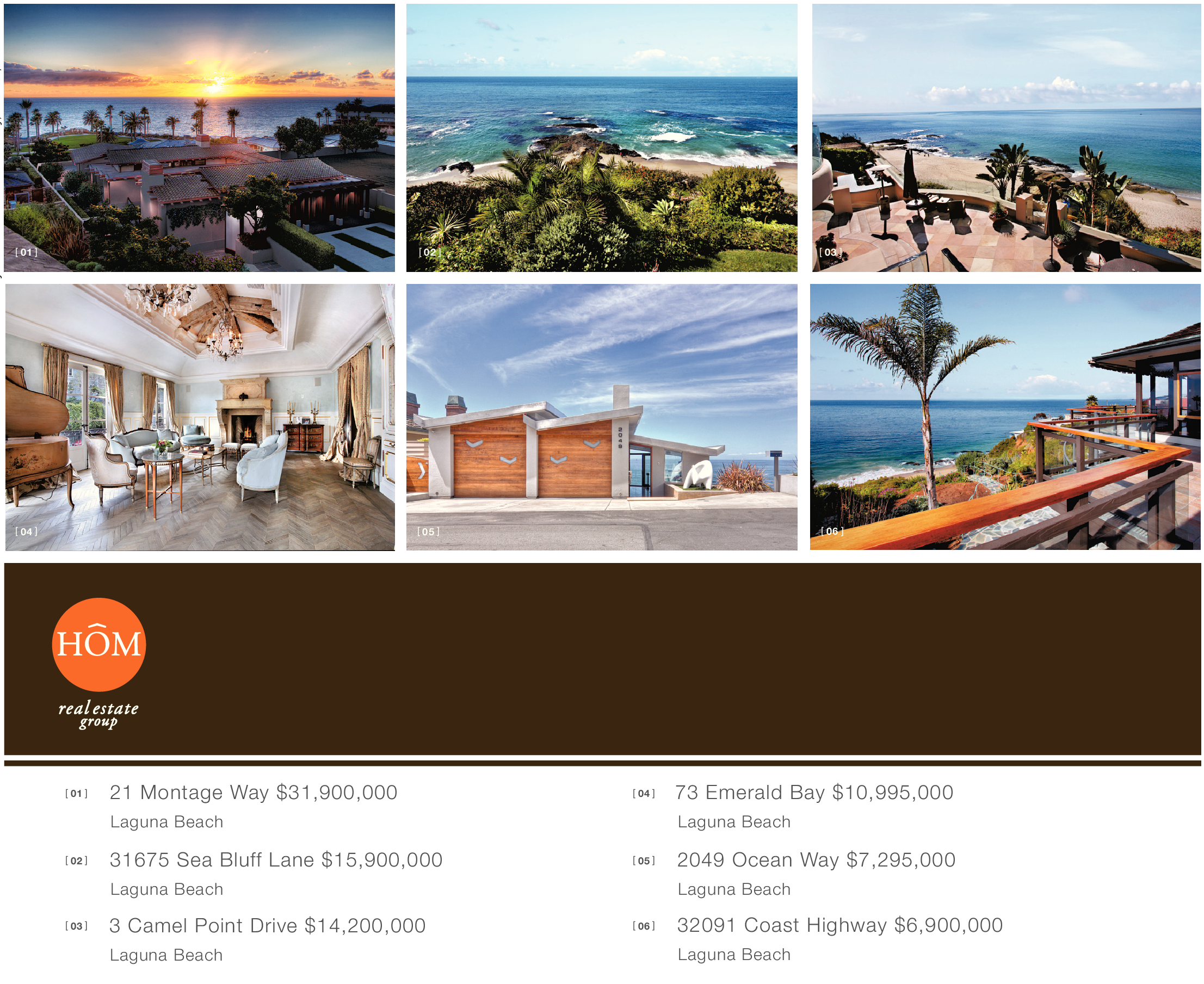 [ 01 ] [ 02 ] [ 03 ] [ 04 ] [ 05 ] [ 06 ] [ 01 ] [ 02 ] [ 03 ] 21 Montage Way $31,900,000 Laguna Beach 31675 Sea Bluff Lane $15,900,000 Laguna Beach 3 Camel Point Drive $14,200,000 Laguna Beach 73 Emerald Bay $10,995,000 Laguna Beach [ 04 ] [ 05 ] [ 06 ] 2049 Ocean Way $7,295,000 Laguna Beach 32091 Coast Highway $6,900,000 Laguna Beach