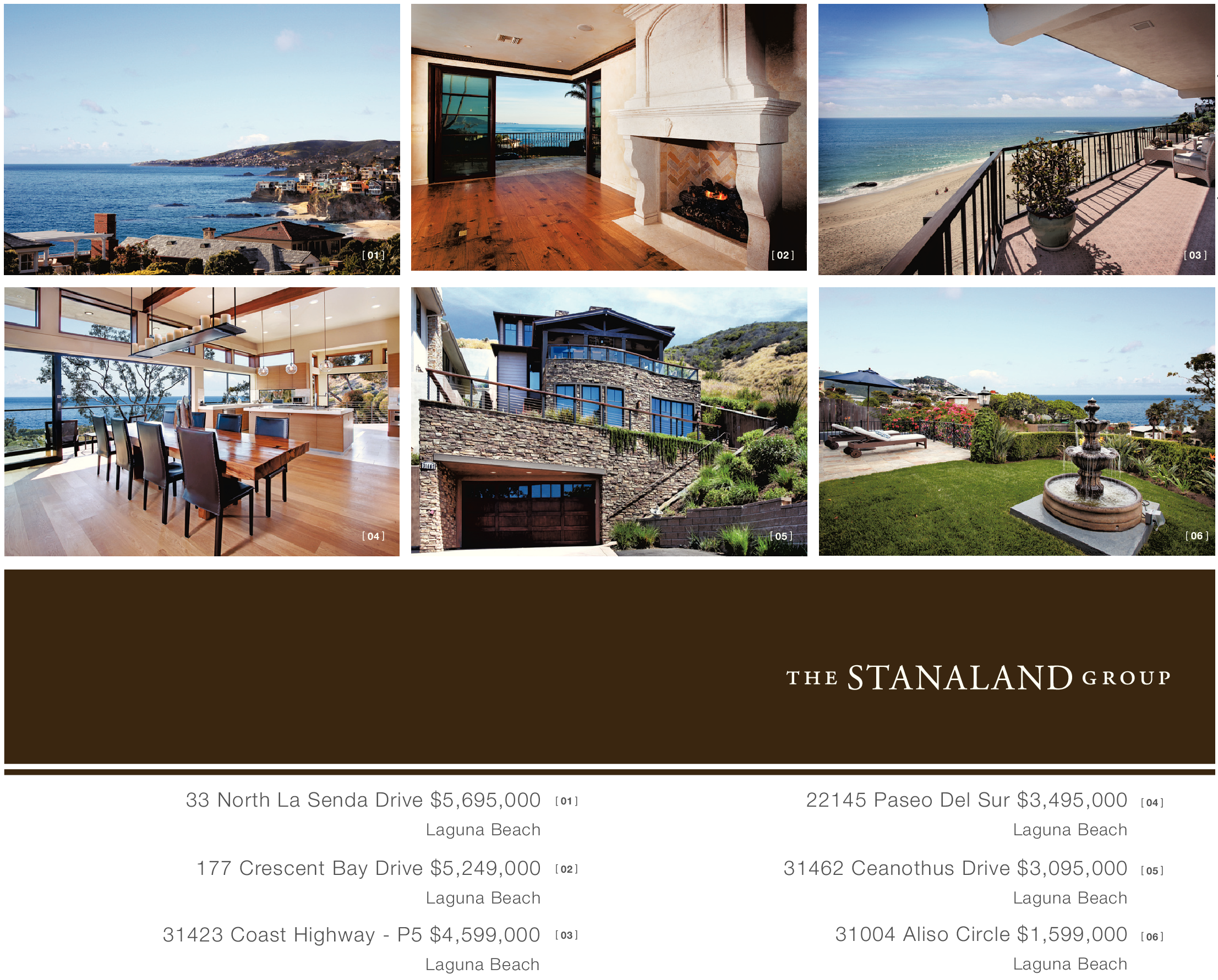 [ 01 ] [ 02 ] [ 04 ] [ 05 ] 33 North La Senda Drive $5,695,000 Laguna Beach 177 Crescent Bay Drive $5,249,000 Laguna Beach 31423 Coast Highway - P5 $4,599,000 Laguna Beach [ 01 ] [ 02 ] [ 03 ] 22145 Paseo Del Sur $3,495,000 Laguna Beach 31462 Ceanothus Drive $3,095,000 Laguna Beach 31004 Aliso Circle $1,599,000 Laguna Beach [ 04 ] [ 05 ] [ 06 ] [ 03 ] [ 06 ]