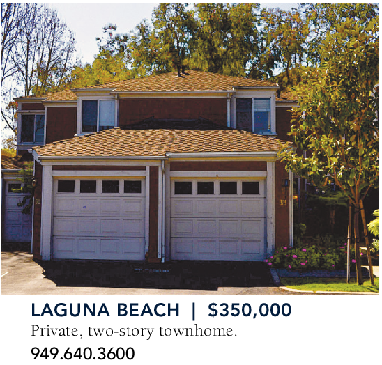 LAGUNA BEACH | $350,000 Private, two-story townhome. 949.640.3600