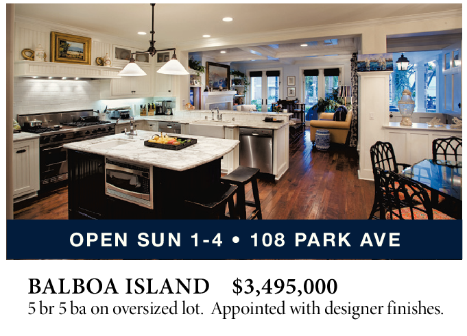 BALBOA ISLAND $3,495,000 5 br 5 ba on oversized lot. Appointed with designer finishes.