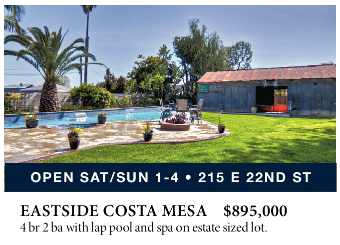 EASTSIDE COSTA MESA $895,000 4 br 2 ba with lap pool and spa on estate sized lot.