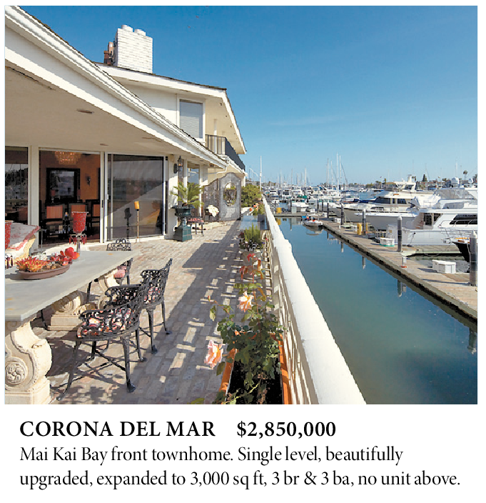 CORONA DEL MAR $2,850,000 Mai Kai Bay front townhome. Single level, beautifully upgraded, expanded to 3,000 sq ft, 3 br & 3 ba, no unit above.