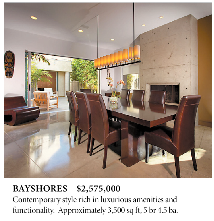 BAYSHORES $2,575,000 Contemporary style rich in luxurious amenities and functionality. Approximately 3,500 sq ft, 5 br 4.5 ba.